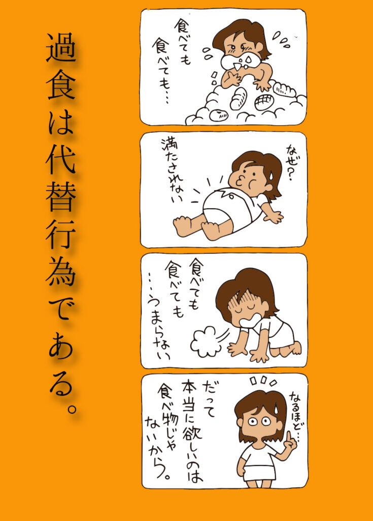 【過食改善へのヒント】はこちらからご覧ください。過食の原因となるエッセンスをまとめてあります。